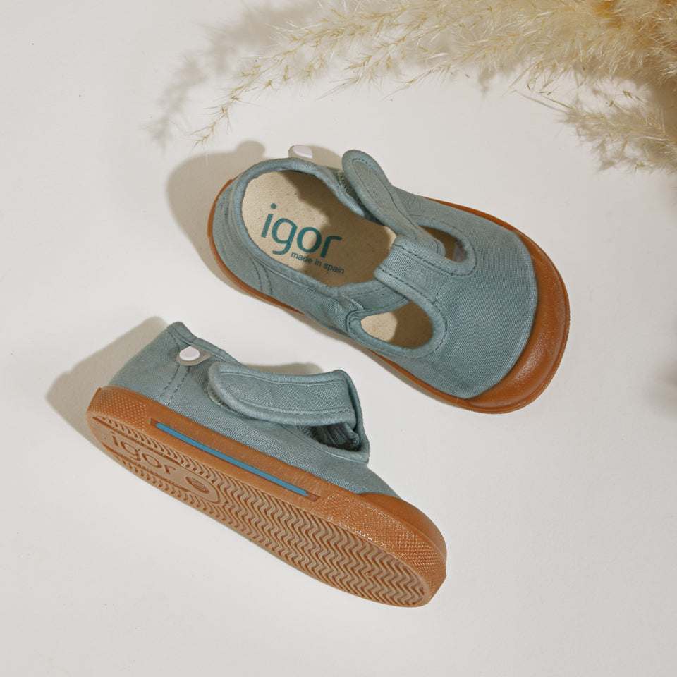 100% cotton T-Bar canvas designed in barefoot wide concept, with wide toe box, zero drop, flexible, soft and with removable sole. The dye on our canvas is uneven due to its washed effect. Made in Spain by Igor. Wash in cold water without the insole.